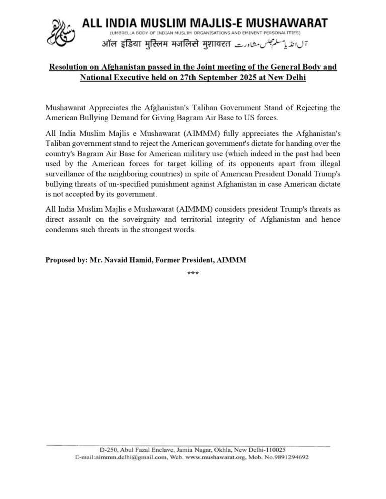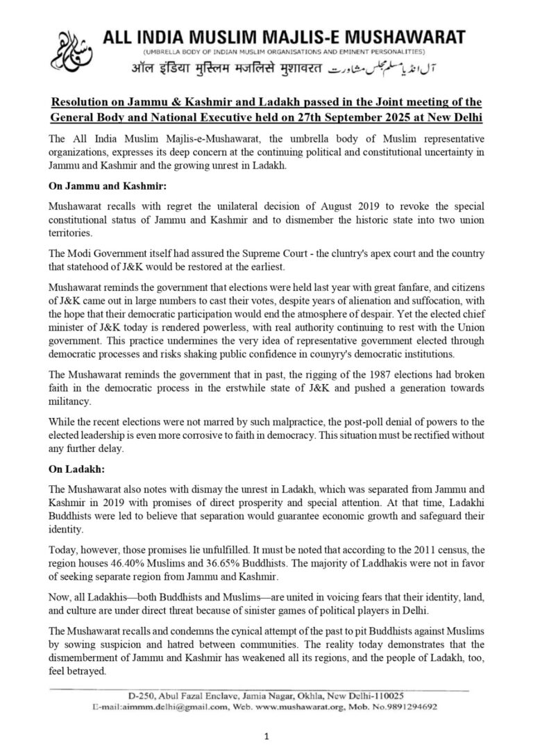 All India Muslim Majlis e Mushawarat (AIMMM) joins millions of citizens who have raised...